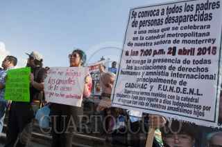MONTERREY, NUEVO LEÓN, 22MARZO2015.- Al rededor de 200 personas pertenecientes a Asociaciones Civiles como Fuerzas Unidas por Nuestros desaparecidos en Nuevo León, Movimiento por la Paz con Justicia y Dignidad, entre otras, se congregaron en la Explanada de los Héroes después de marchar por las calles del centro en donde protestaron por los desaparecidos en el pais. FOTO: GABRIELA PÉREZ MONTIEL / CUARTOSCURO.COM