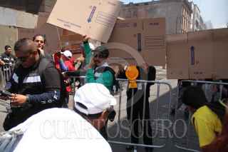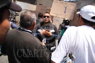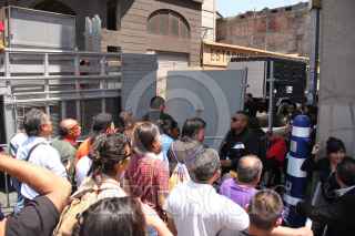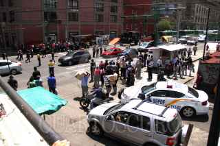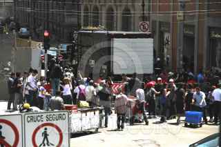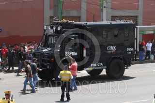 MÉXICO, D.F., 24MARZO2015.- Caos vial provocó la filmación de la película "Spectre" la próxima versión de James Bond, con la utilización de un vehículo nuevo de la Policía del Distrito Federal en el cruce de Donceles y Eje Central. El vehículo forma parte de una escena de Accion en donde se pudo observar al protagonista Daniel Craig, en la esquina de Donceles y Xicoténcatl. Con cartones y luego con vayas metálicas, elementos de seguridad privada, policías de la capital y jóvenes del Instituto de la Juventud del D.F., intentan bloquear la mirada de cientos de curiosos que transitan por Eje Central. FOTO: ADOLFO VLADIMIR /CUARTOSCURO.COM