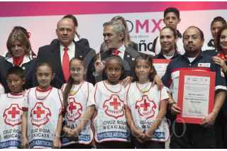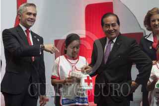MÉXICO, D.F., 24MARZO2015.- Fernando Suinaga, presidente de la Cruz Roja y Miguel Ángel Mancera, Jefe de Gobierno, durante el donativo anual de funcionarios del GDF para esta benemérita institución. FOTO: MOISÉS PABLO /CUARTOSCURO.COM