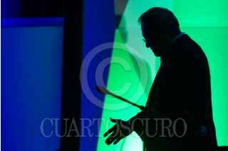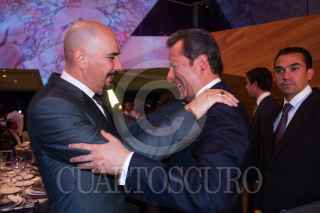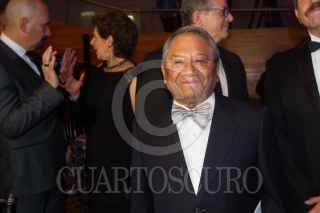 MÉXICO, D.F., 24MARZO2015.- Armando Manzanero bajando del escenario después de dar una palabras de agradecimiento a todos los miembros del SACM. La Sociedad de Autores y Compositores de México celebro con una cena de gala en el centro Cultural Roberto Cantoral su 70 aniversario. FOTO: ISABEL MATEOS /CUARTOSCURO.COM