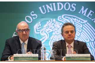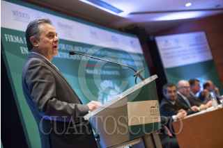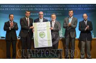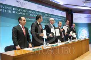 MÉXICO, D.F., 25MARZO2015.- Enrique Ochoa Reza, Director General de la CFE, Pedro Joaquín Coldwell, Secretario de Energía y Juan José Guerra Abud, Secretario del Medio Ambiente y Recursos Naturales, participaron en la "Firma de Convenio de Colaboración y Entrega de Certificados Ambientales" entre la Comisión Federal de Electricidad (CFE) y la Procuraduría Federal de Protección al Medio Ambiente (Profepa), realizada en el Museo Tecnológico. FOTO: ADOLFO VLADIMIR /CUARTOSCURO.COM