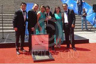 MÉXICO, D.F., 25MARZO2015.- La agrupación emblemática de la cumbia mexicana Los Ángeles Azules fue galardonada en el Auditorio Nacional, sitio donde diversos artistas nacionales e internacionales han develado su placa en el Paseo de las Lunas. Jorge, José, Alfredo, Lupita, Cristian y Elías fueron los integrantes de la agrupación que estuvieron presentes durante la entrega de este galardón, otorgada por el Auditorio Nacional. Los Ángeles Azules ya preparan su gira internacional que comenzará el próximo 9 de abril en Atlanta. FOTO: MOISÉS PABLO /CUARTOSCURO.COM