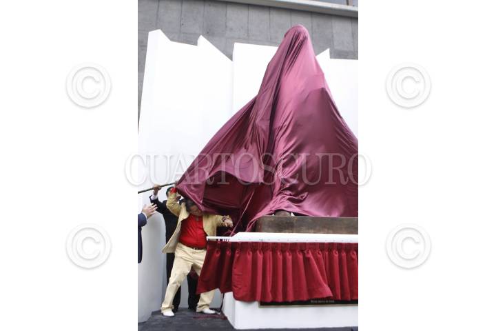 MÉXICO, D.F., 25MARZO2015.- Ivonne Ortega, secretaria general del PRI, Jesús Reyes Heroles, hijo del ideólogo priista y César Camacho Quiroz, dirigente nacional del tricolor, conversan con la Nieta de Heriberto Jara, Alicia Sánchez Jara, al finalizar la ceremonia en donde se develó un monumento de Jesús Reyes Heroles en la explanada del CEN del PRI. FOTO: MOISÉS PABLO /CUARTOSCURO.COM