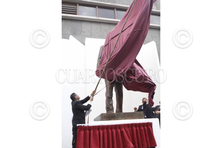 MÉXICO, D.F., 25MARZO2015.- Ivonne Ortega, secretaria general del PRI, Jesús Reyes Heroles, hijo del ideólogo priista y César Camacho Quiroz, dirigente nacional del tricolor, conversan con la Nieta de Heriberto Jara, Alicia Sánchez Jara, al finalizar la ceremonia en donde se develó un monumento de Jesús Reyes Heroles en la explanada del CEN del PRI. FOTO: MOISÉS PABLO /CUARTOSCURO.COM