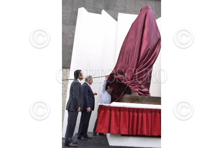 MÉXICO, D.F., 25MARZO2015.- Ivonne Ortega, secretaria general del PRI, Jesús Reyes Heroles, hijo del ideólogo priista y César Camacho Quiroz, dirigente nacional del tricolor, conversan con la Nieta de Heriberto Jara, Alicia Sánchez Jara, al finalizar la ceremonia en donde se develó un monumento de Jesús Reyes Heroles en la explanada del CEN del PRI. FOTO: MOISÉS PABLO /CUARTOSCURO.COM