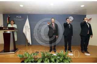 MÉXICO, D.F., 25MARZO2015.- José Alberto Rodríguez Calderón fue designado como titular de la Subprocuraduría Jurídica y Asuntos Internacionales de la Procuraduría General de la República (PGR). José Alberto Rodríguez Calderón era diputado federal por el estado de Hidalgo y fue suplente del exprocurador Jesús Murillo Karam, quien dejó su curul el 5 de diciembre de 2012 para ser titular de la PGR. En la misma ceremonia se anunció la designación de Rommel Moreno Manjarrez, como titular de la Unidad para la Implementación del Sistema Procesal Penal Acusatorio, y a Carlos Alberto Bonnin Erales como secretario particular de la procuradora. La Procuradora Arely Gómez fue la encargada de tomarles protesta a los nuevos funcionarios. FOTO: PGR /CUARTOSCURO.COM