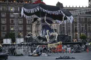 MÉXICO, D.F., 25MARZO2015.- Utilería de la película Spectre de la saga James Bond se ha colocado en la explanada de zócalo capitalino previo a la filmación de las últimas escenas de la película que tuvo como locación la capital del país. FOTO: IVÁN STEPHENS /CUARTOSCURO.COM