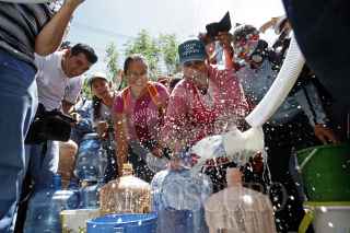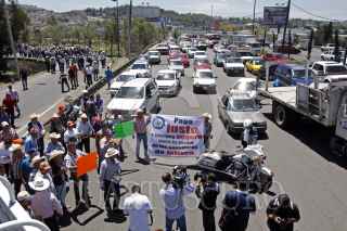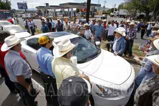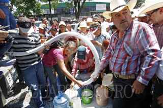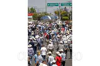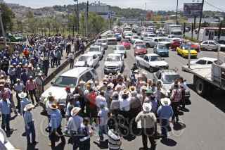 GUADALAJARA, JALISCO, 26MARZO2015: Aproximadamente Mil 200 lecheros de la zona de los Altos de Jalisco, se manifestaron a las afueras de la Delegación de la Secretaria de Agricultura, Ganadería, Desarrollo Rural, Pesca y Alimentación SAGARPA, para exigir un pago justo por su producto y como protesta regalaron cinco mil litros del liquido y bloquearon las principales vías de la zona del Álamo lo cual provoco un gran caos vial. FOTO: FERNANDO CARRANZA GARCIA / CUARTOSCURO.COM