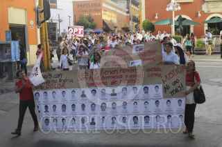 CUERNAVACA, MORELOS, 26MARZO2015.- A seis meses de la desaparición de 43 estudiantes de la Escuela Normal Rural de Ayotzinapa, Guerrero, se realizó una marcha de la iglesia del Calvario al Zócalo, donde los manifestantes expresaron indignación ante el intento del gobierno por cerrar la investigación negándose a considerar desaparición forzada la acción policiaco-militar. FOTO: PATRICIA MORALES / CUARTOSCURO.COM