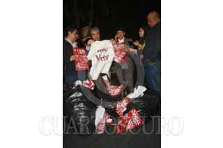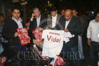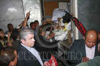 MÉXICO, D.F., 26MARZO2015.- Los diputados federales del PRD Fernando Cuéllar y Roberto López Suárez, acompañados del presidente de ese instituto político en el Distrito Federal, Raúl Flores, y del candidato a la Asamblea Alejandro Fernández, acudieron a la colonia Obrero Popular, en la delegación Azcapotzalco, para revelar el hallazgo de un centro de acopio de despensas de candidatos del Movimiento de Regeneración Nacional (Morena). La víspera, Morena había divulgado el descubrimiento de despensas en un centro deportivo de la delegación Cuauhtémoc, acusando al PRD de mantenerlas resguardadas para su reparto durante el proceso electoral. Esta noche, en la calle Poniente 62, número 3710, de la colonia Obrero Popular, en Azcapotzalco, se presentaron los cuatro perredistas, para corroborar la denuncia ciudadana sobre la existencia de despensas de Morena en ese lugar. FOTO: PRDDF /CUARTOSCURO.COM