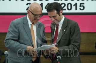 MÉXICO, D.F., 26MARZO2015.- Dante Delgado, presidente del partido Movimiento Ciudadano, entrego al presidente del INE, Lorenzo Córdova el registro de sus candidatos a diputados federales, para las elecciones del próximo 7 de junio. FOTO: ISABEL MATEOS /CUARTOSCURO.COM