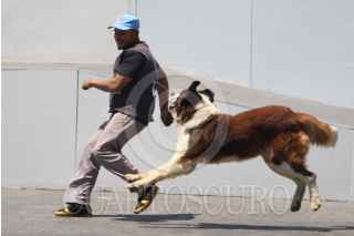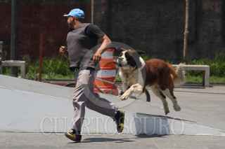 MÉXICO, D.F., 30MARZO2015.- Una persona juega con su mascota, un perro San Bernanrdo en calles de la delegación Iztapalapa. FOTO: SAÚL LÓPEZ /CUARTOSCURO.COM
