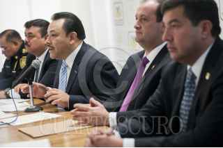 MEXICO, D.F., 30MARZO2015.- Hiram Almeida, titular de la Secretaría de Seguridad Pública, Héctor Serrano, secretario de gobierno capitalino, y Rodolfo Ríos, procurador de justicia capitalino, ofrecieron una conferencia de prensa para ofrecer detalles sobre los operativos de seguridad que implementarán durante la Semana Santa, principalmente en Iztapalapa, donde se llevará a cabo la 172 representación de la pasión de Cristo. FOTO: DIEGO SIMÓN SÁNCHEZ /CUARTOSCURO.COM