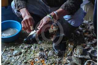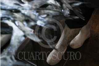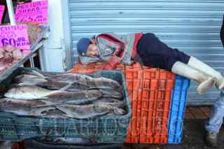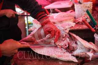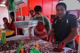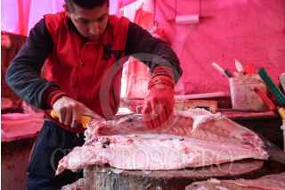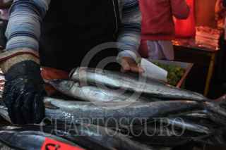 MÉXICO, D.F., 30MARZO2015.- El Mercado La Nueva Viga, ubicado en la delegación Iztapalapa, es un espectáculo que comienza a las cuatro de la mañana con la descarga de peces de todo tamaño y forma, millones de ostiones y almejas, gigantescas mantarrayas, pequeños tiburones y universos de camarones. Cientos de camiones provenientes de todo el país llegan con unas 500 toneladas de alimentos –60 por ciento de la producción nacional pesquera–, que se concentrarán en el segundo mercado del mundo en cuanto a volúmenes (sólo superado por Tokio). FOTO: ISABEL MATEOS /CUARTOSCURO.COM