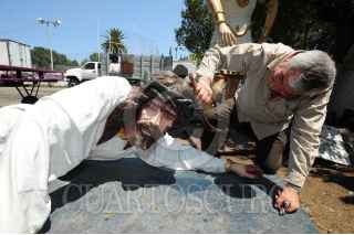 MÉXICO, D.F., 30MARZO2015.- Mantenimiento a las figuras monumentales del Viacrucis que recorrerán las calles cercanas a la delegación Venustiano Carranza con motivo de la Semana Santa. FOTO: ARMANDO MONROY /CUARTOSCURO.COM