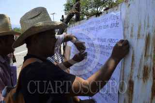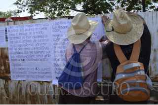 IGUALA, GUERRERO, 31MARZO2015.- Padres de familia de los 43 estudiantes desaparecidos acudieron Iguala, a colocar carteles, volantes y folletos, en las que se lee que los padres de piden ayuda a un señor Santiago Mazarí Hernández líder del grupo delincuencial "Guerreros Unidos", para encontrar sus hijos, porque el mal gobierno no ha sido serio, al contrario nos ha lastimado con sus mentiras, leímos el mensaje en la manta, le pedimos ayuda "Gracias por su comprensión", se lee en los carteles que colocaron. FOTO: JOSÉ I. HERNÁNDEZ / CUARTOSCURO.COM