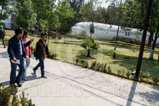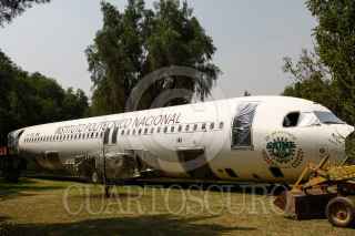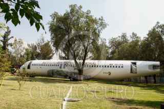 MÉXICO, D.F., 01ABRIL2015.- El avión airbus donado por la aerolínea Interjet se encuentra dentro de las instalaciones de la ESIME Ticoman luego de ser trasladado el día de ayer desde el Centro de Mantenimiento en el Aeropuerto Internacional de Toluca. La donación consiste en el fuselaje con equipamiento parcial de una aeronave Airbus A320-200, serie 0707, con capacidad para 150 pasajeros. Tiene una antigüedad no mayor a 20 años y aún volaba hace seis meses. Con este avión-escuela los alumnos podrán realizar proyectos de diseño y construcción de los trenes de aterrizaje de reemplazo, planes de acción y diseño para el desarmado y armado del fuselaje en dos secciones, elaboración de plataformas para montaje del avión en las instalaciones de la escuela y diseño del sistema de iluminación exterior, entre otros aspectos relacionados a la Ingeniería Aeronáutica. FOTO: RODOLFO ANGULO /CUARTOSCURO.COM