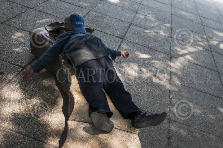 MÉXICO, D.F., 01ABRIL2015.- Fulminado por el calor que hizo el día de hoy, un hombre duerme en una banca sobre Paseo de la Reforma. FOTO: DIEGO SIMÓN SÁNCHEZ /CUARTOSCURO.COM