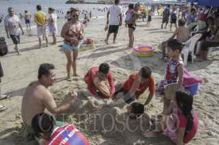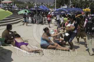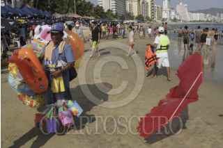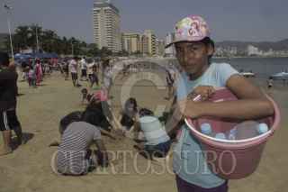 ACAPULCO, GUERRERO, 01ABRIL2015.- Siguen llegando turistas al puerto de Acapulco en esta semana santa, donde en la playa miran con asombro a los niños quienes venden aguas donas entre otras cosas. FOTO: BERNANDINO HERNÁNDEZ /CUARTOSCURO.COM