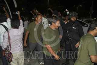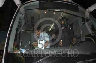 ACAPULCO, GUERRERO, 01ABRIL2015.- Un autobús con 32 integrantes de la UPOEG, llegó con Bruno Placido, custodiado por elementos de la gendarmería, elementos de la Fiscalía Regional, con la finalidad de dar seguridad a los trasladados a este puerto. En el acto estuvo el encargado de Derechos Humanos del Estado, quien al ver a los lesionados y golpeados, los trasladó a una clínica para ser atendidos. FOTO: BERNANDINO HERNÁNDEZ /CUARTOSCURO.COM
