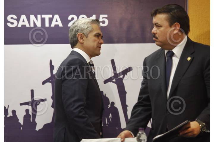 MÉXICO, D.F., 02ABRIL2015.- Miguel Ángel Mancera, Jefe de Gobierno y Carolina Santana Nieves, encargada del despacho de Iztapalapa, ofrecieron detalles de seguridad y logística del representación de la pasión de Cristo 2015 en Iztapalapa. FOTO: DIEGO SIMÓN SÁNCHEZ /CUARTOSCURO.COM