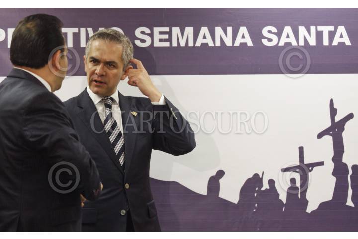 MÉXICO, D.F., 02ABRIL2015.- Miguel Ángel Mancera, Jefe de Gobierno y Carolina Santana Nieves, encargada del despacho de Iztapalapa, ofrecieron detalles de seguridad y logística del representación de la pasión de Cristo 2015 en Iztapalapa. FOTO: DIEGO SIMÓN SÁNCHEZ /CUARTOSCURO.COM