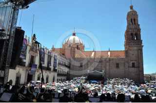 ZACATECAS, ZACATECAS, 02ABRIL2015.- Con la dirección de Salvador García y Ortega, se realizó el tradicional concierto de la Banda Sinfónica y Coro de Zacatecas, ante un público que abarrotó la Plaza de Armas del centro histórico. FOTO: CARLOS SEGURA /CUARTOSCURO.COM