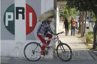 XOCHITEPEC, MORELOS, 03ABRIL2015.- Un joven panadero espera iniciar la venta de su producto en una esquina del poblado de Alpuyeca. Al fondo, un mural que contiene el logo del Partido Revolucionario Institucional. A partir de este 05 de abril comenzarán a difundirse más de 13 millones de spots políticos en el marco de las elecciones del 7 de junio. FOTO: PATRICIA MORALES / CUARTOSCURO.COM