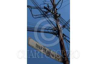 MEXICO, D.F., 04ABRIL2015.- Las líneas de los cables de energía eléctrica se confunden y revuelven en la maraña que terminan siendo los postes, debido al robo de electricidad en las colonias y barrios populares de la ciudad, en las que la gente cuelga cables o diablitos, con el riesgo de provocar cortos y fallas, aparte de las pérdidas millonarias que esta práctica representa. En la imagen, diablitos en el callejón Infiernito de la delegación Xochimilco. FOTO: DAVID POLO /CUARTOSCURO.COM
