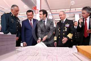 MÉXICO, D.F., 06ABRIL2015.- El Consejero Presidente del INE Lorenzo Córdova Vianello, el Secretario de la Marina Armada de México Vidal Francisco Soberón Sanz, el Secretario de la Defensa Nacional Salvador Cienfuegos Zepeda, y el Secretario de Gobernación Miguel Ángel Osorio Chong, revisan las boletas electorales que se utilizarán en las próximas elecciones de julio, su impresión se inició hoy en los Talleres Gráficos de México. FOTO: INE /CUARTOSCURO.COM