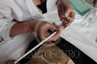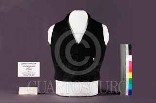 MEXICO, D.F., 07ABRIL2015.- Un chaleco confeccionado con telas de algodón, lana y seda que presenta varios orificios ocasionados por impacto de bala, y que forma parte del acervo de indumentaria del Museo Nacional de Historia (MNH), Castillo de Chapultepec, fue restaurado por especialistas del Instituto Nacional de Antropología e Historia (INAH). La prenda perteneció al general liberal Leandro Valle Martínez, quien fue fusilado el 26 de junio de 1861. FOTO: INAH/CUARTOSCURO.COM