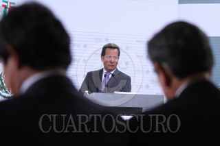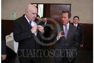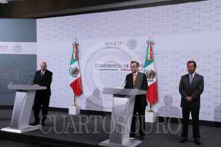 MÉXICO, D.F., 07ABRIL2015.- Juan José Guerra Abud, titular de la Semarnat y Eduardo Sánchez Hernández, vocero de la Presidencia de la República, durante la conferencia de prensa para presentar los compromisos que el gobierno de México realizará ante el cambio climático para el periodo 2020-2030. FOTO: ADOLFO VLADIMIR /CUARTOSCURO.COM