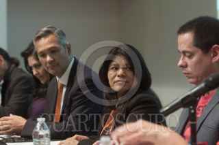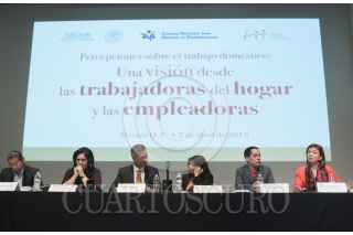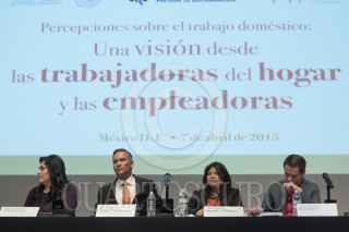 MÉXICO, D.F., 07ABRIL2015.- Ricardo Bucío Mujica, presidente del Conapred y Marcelina Bautista Bautista, fundadora del Centro de Apoyo y Capacitación para Empleadoras del Hogar (CACEH), durante el foro "Percepciones sobre el trabajo domésticos: Una visión desde las trabajadoras del hogar y las empleadoras" en el Museo Memoria y Tolerancia. FOTO: MOISÉS PABLO /CUARTOSCURO.COM