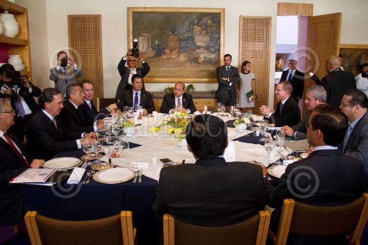 MÉXICO, D.F., 07ABRIL2015.- Héctor Gutiérrez de la Garza y Manlio Fabio Beltrones Rivera a finalizar la reunión que sostuvieron los coordinadores de los diversos grupos parlamentarios del Congreso de las Unión en el Club de Banqueros. FOTO: IVÁN STEPHENS /CUARTOSCURO.COM