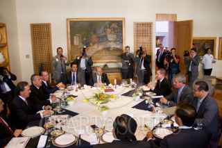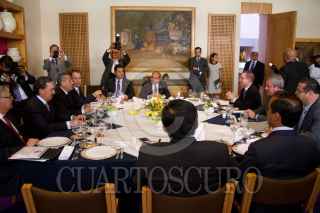 MÉXICO, D.F., 07ABRIL2015.- Héctor Gutiérrez de la Garza y Manlio Fabio Beltrones Rivera a finalizar la reunión que sostuvieron los coordinadores de los diversos grupos parlamentarios del Congreso de las Unión en el Club de Banqueros. FOTO: IVÁN STEPHENS /CUARTOSCURO.COM