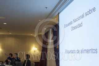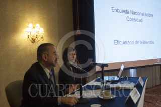 MÉXICO, D.F., 08ABRIL2015.- El abogado Javier Zuñiga y Alejandro Calvillo, director de El Poder del Consumidor, presentaron los resultados de la encuesta nacional sobre obesidad y etiquetado de alimentos, en la conferencia de prensa denunciaron que el etiquetado frontal para alimentos y bebidas impuesto por la Comisión Federal para la Protección contra Riesgos Sanitarios de manera obligatoria a partir del próximo 1 de julio, con el supuesto fin de prevenir y combatir el sobrepeso, la obesidad y la diabetes, es totalmente incomprensible para los consumidores mexicanos, ya que en la encuesta se observa como la mayoría de la población no sabe cuantas calorías son recomendadas al día y que el etiquetado de los alimentos no son claros, ni sirven como una guía para el consumidor y así poder llevar una dieta adecuada. FOTO: MOISÉS PABLO /CUARTOSCURO.COM