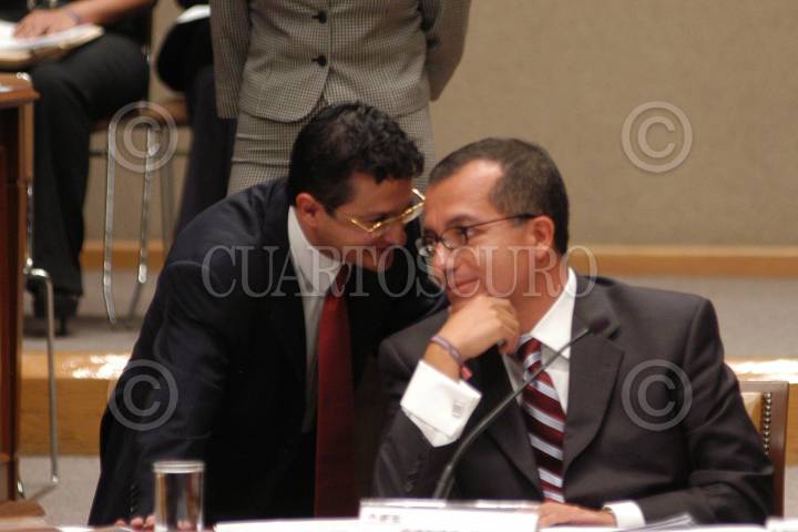 MEXICO D.F. 18ABRIL2006.- Felipe Solis, representante del PRI ante el IFE conversa con su homologo perredista Horacio Duarte durante la sesión extraordinaria del Consejo Federal Electoral. FOTO: Germán Romero/CUARTOSCURO.COM