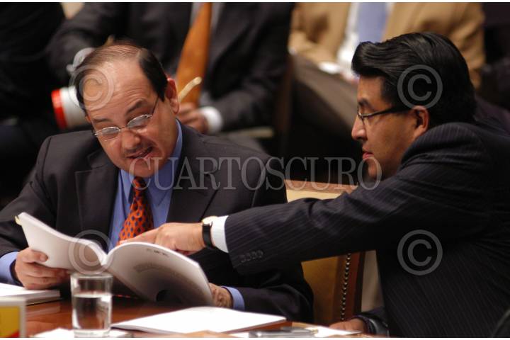 MEXICO D.F. 18ABRIL2006.- Felipe Solis, representante del PRI ante el IFE conversa con su homologo perredista Horacio Duarte durante la sesión extraordinaria del Consejo Federal Electoral. FOTO: Germán Romero/CUARTOSCURO.COM