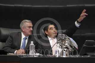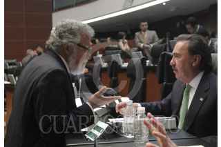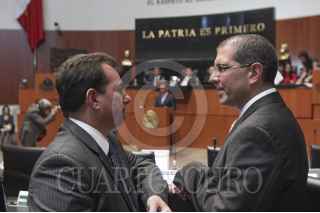 MÉXICO, D.F., 09ABRIL2015.- Los senadores José Francisco Yunes Zorrilla, PRI, y Armando Ríos Píter, PRD, en el salón de plenos durante la sesión ordinaria de la Cámara de Senadores. FOTO: CUARTOSCURO.COM