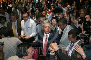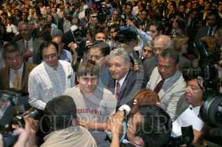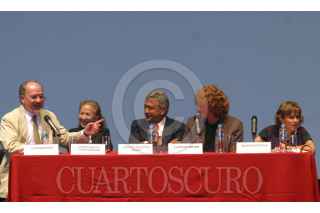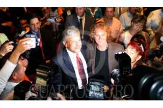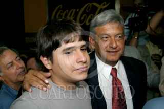MEXICO, D.F. 18ABRIL2006.- Lorenzo Meyer, Rosario Ibarra de Piedra, Andrés Manuel López Obrador, candidato de la coalición Por el Bien de Todos a la presidencia de la República, Luis Mandoki, director del documental "Quién es el Sr. López, y Blanch Petriche.previo a la proyección de la cinta. FOTO: Nelly Salas/CUARTOSCURO.COM