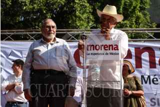 MÉXICO, D.F., 10ABRIL2015.- Durante el mitin en el que participaron más de un centenar de personas en la delegación Benito Juárez, AMLO advirtió que Morena ocupa primer lugar en las encuestas en la Ciudad de México, que es inaudito que existan personas al frente de poder que tengas la posibilidad de comprar relojes de mas de un millón de pesos, que en su sexenio se construyeron dos hospitales de especialidad en los cuales se invirtieron 800 millones de pesos y simultáneamente EPN gasto mas de 15 mil millones de pesos igualmente en dos hospitales. FOTO: ISABEL MATEOS /CUARTOSCURO.COM