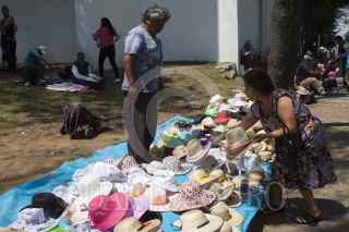 MÉXICO, D.F., 11ABRIL2015.- Venta de sombreros para el sol en la explanada de la delegación Cuajimalpa. FOTO: MOISÉS PABLO /CUARTOSCURO.COM