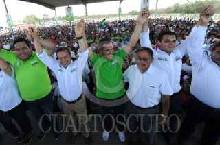 CHAMPOTÓN, QUINTANA ROO, 12ABRIL2015.- En la Asociación de Ganaderos de esta localidad, el presidente del CEN del PRI, César Camacho encabezó, al lado de Alejandro Moreno Cárdenas, candidato del tricolor a la gubernatura de Campeche, un evento con productores del campo, pescadores y vecinos de este municipio. FOTO: CUARTOSCURO.COM
