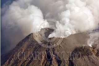 GUADALAJARA, JALISCO, 12ABRIL2015.- Personal del Comité Científico Jalisco-Colima y de la Dirección de Operaciones de la Unidad Estatal de Protección Civil y Bomberos de Jalisco (UEPCBJ) realizaron un sobrevuelo de observación en el volcán El Colima, para monitorear y analizar la evolución de El Coloso de Fuego y sus condiciones. Durante el sobrevuelo, se observó el proceso de evolución del cráter formado en el domo preexistente en el pasado periodo de 38 días, donde han ocurrido exhalaciones diarias, las cuales han alcanzado hasta tres mil metros de altura. FOTO: CUARTOSCURO.COM