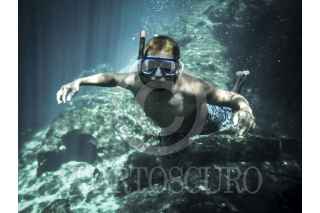 TULUM, QUINTANA ROO, 12ABRIL2015.- Turistas aprovechan el último fin de semana de vacaciones para realizar distintas actividades como el esnorquel en los cenotes de la localidad, los cuales brindan espectaculares escenarios acuáticos. FOTO: RASHIDE FRIAS /CUARTOSCURO.COM