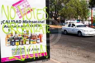 MORELIA, MICHOACÁN,12ABRIL2015.- Al par que comenzaron las campañas electorales en el estado, para gobernador, diputados locales, diputados federales y alcaldías, comenzaron en varios puntos de la capital a aparecer pintas que invita a los ciudadanos a no votar. FOTO: JUAN JOSÉ ESTRADA SERAFÍN /CUARTOSCURO.COM
