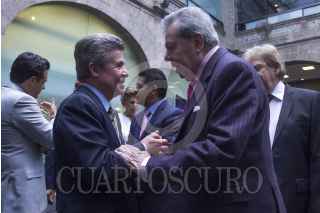 MÉXICO, D.F., 13ABRIL2015.- Los senadores, Zoe Robledo (PRD) Enrique Burgos (PRI); Arturo Zamora (PRI) y Roberto Gil Zuarth (PAN) durante la inauguración del seminario "La Constitución Análisis Rumbo a su Centenario". FOTO: ENRIQUE ORDÓÑEZ /CUARTOSCURO.COM