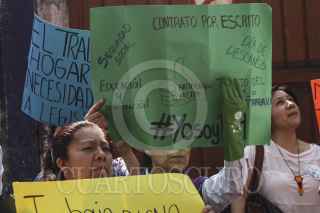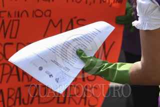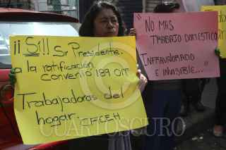 MÉXICO, D.F., 14ABRIL2015.- Empleadas domesticas organizadas, acudieron a la Secretaria de Gobernación para entregar una carta dirigida a Miguel Ángel Osorio Chong exigiendo una ratificación al convenio 189, en el que se establecen derechos pra las trabajadoras del hogar, como seguro medico, vacaciones, etc. Este convenio es internacional, la OIT (Organización Internacional del Trabajo) ha enviado al Senado de la República una lista de recomendaciones para llevar a cabo dicho convenio. FOTO: ISABEL MATEOS /CUARTOSCURO.COM