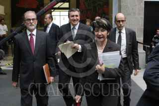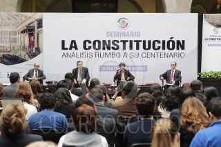 MEXICO, D.F., 14ABRIL2015.- En el marco del segundo día del Seminario “La constitución, análisis rumbo a su centenario" los senadores, Angélica de la Peña y Enrique Burgos acompañaron al Dr. Luis Raúl González Pérez, Presidente De la CNDH y al Dr. Fabián Aguinaco Bravo, abogado del ITAM y el Dr. Miguel Sarre Iguiniz, investigador del ITAM. FOTO:SENADO /CUARTOSCURO.COM
