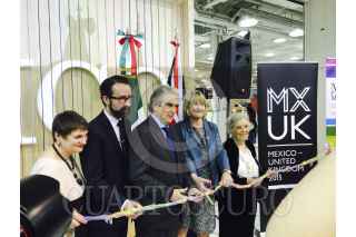 LONDRES, INGLATERRA, 14ABRIL2015.- Con uno de los programas culturales profesionales más importantes en materia de promoción editorial que haya presentado México en el exterior, fue inaugurada este martes la Feria del Libro de Londres con la presencia de 40 casas editoriales mexicanas que darán cuenta de la vitalidad de la industria del libro en nuestro país y las oportunidades de intercambio cultural que ofrece a través de los autores connacionales. La apertura de este espacio dedicado a México estuvo a cargo de Rafael Tovar y de Teresa, presidente del Conaculta, Jack Thomas, directora de la London Book Fair; la baronesa Jane Bonham-Carter, el embajador de México en el Reino Unido, Diego Gómez Pickering, y Ricardo Cayuela, director general de Publicaciones del Conaculta, además de la escritora Elena Poniatowska. FOTO: CONACULTA /CUARTOSCURO.COM
